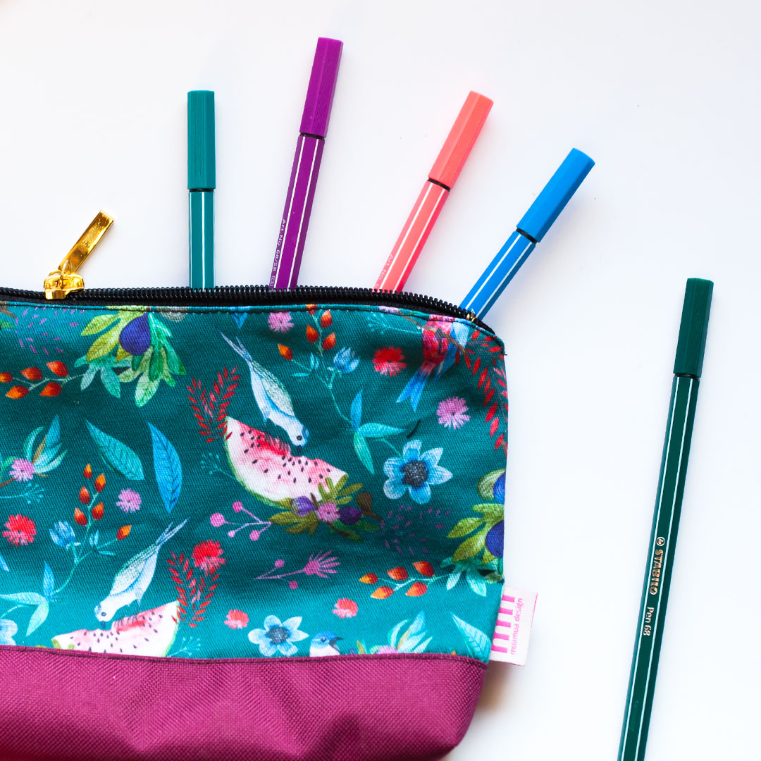 Kosmetyczki i piórniki: Osobiście dbałam o to, by wzór na tkaninie układał się idealnie. Pokochali je ci, którzy lubią otaczać się pięknem w codziennych przedmiotach.