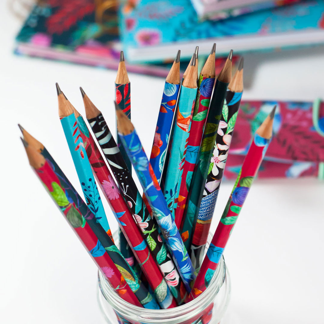Notesy i ołówki: Wykonałam je ręcznie, tworząc spójną serię papierniczą.