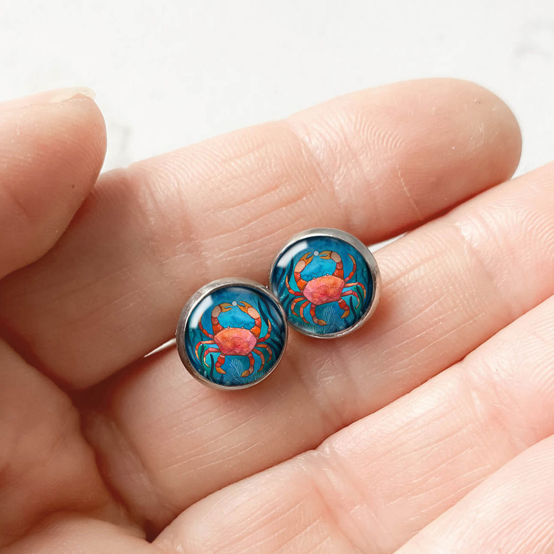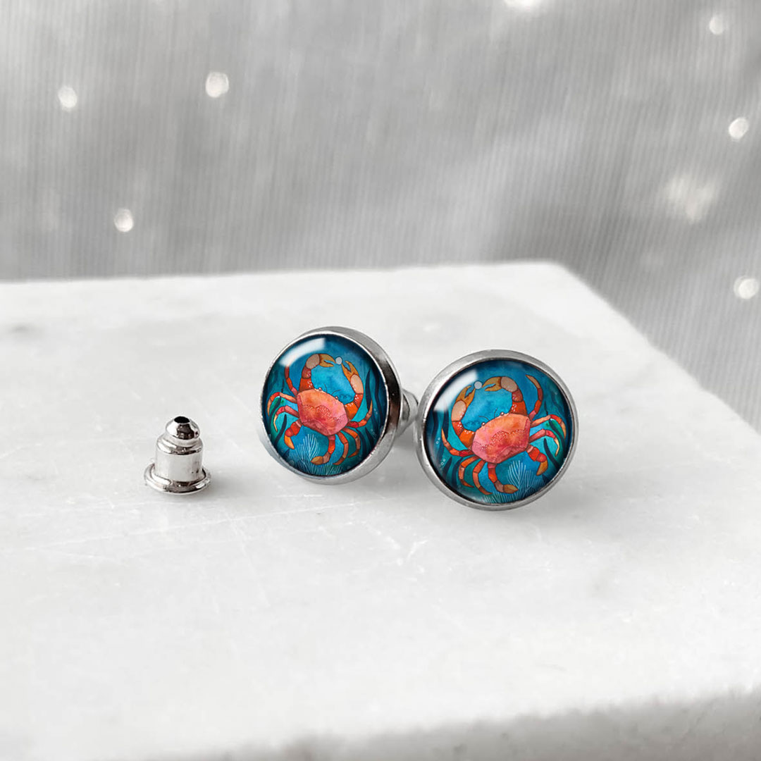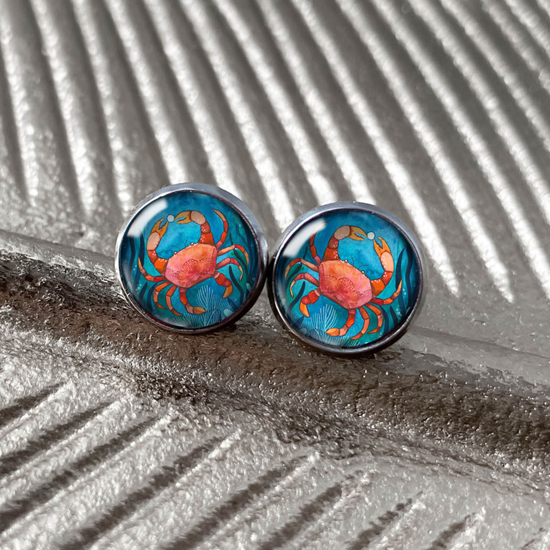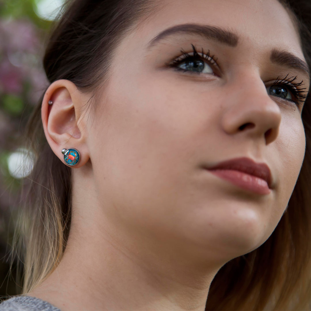 Kolczyki wkrętki z serii Morski Świat, z kolorową, autorską ilustracją to biżuteria, która łączy w sobie delikatną formę i wyrazisty wzór. Barwy obrazka są intensywne, dzięki czemu kolczyki przyciągają uwagę i dodają blasku do każdej stylizacji.