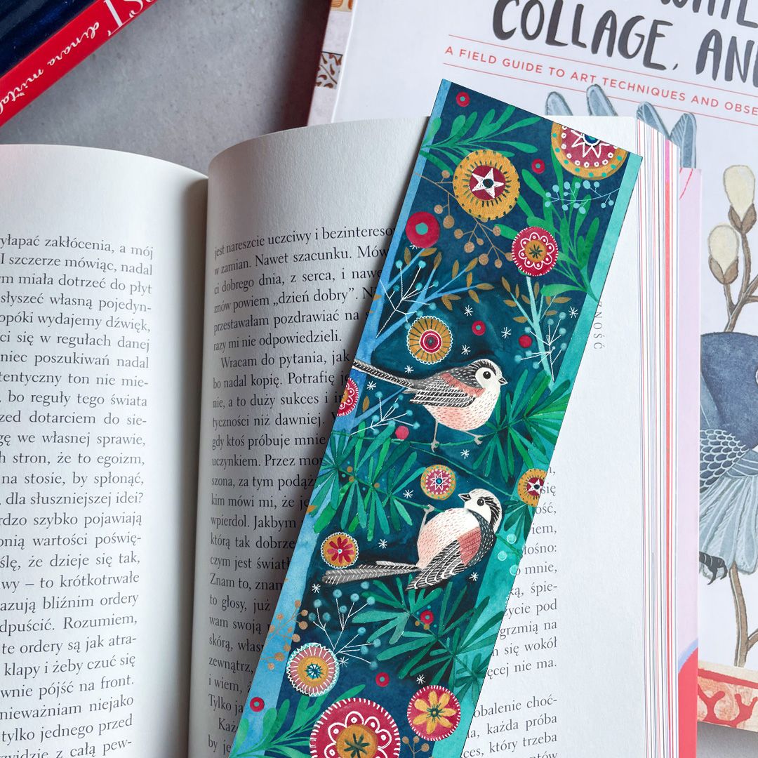Artystyczna zakładka z autorską ilustracją akwarelową inspirowaną światem flory i fauny.