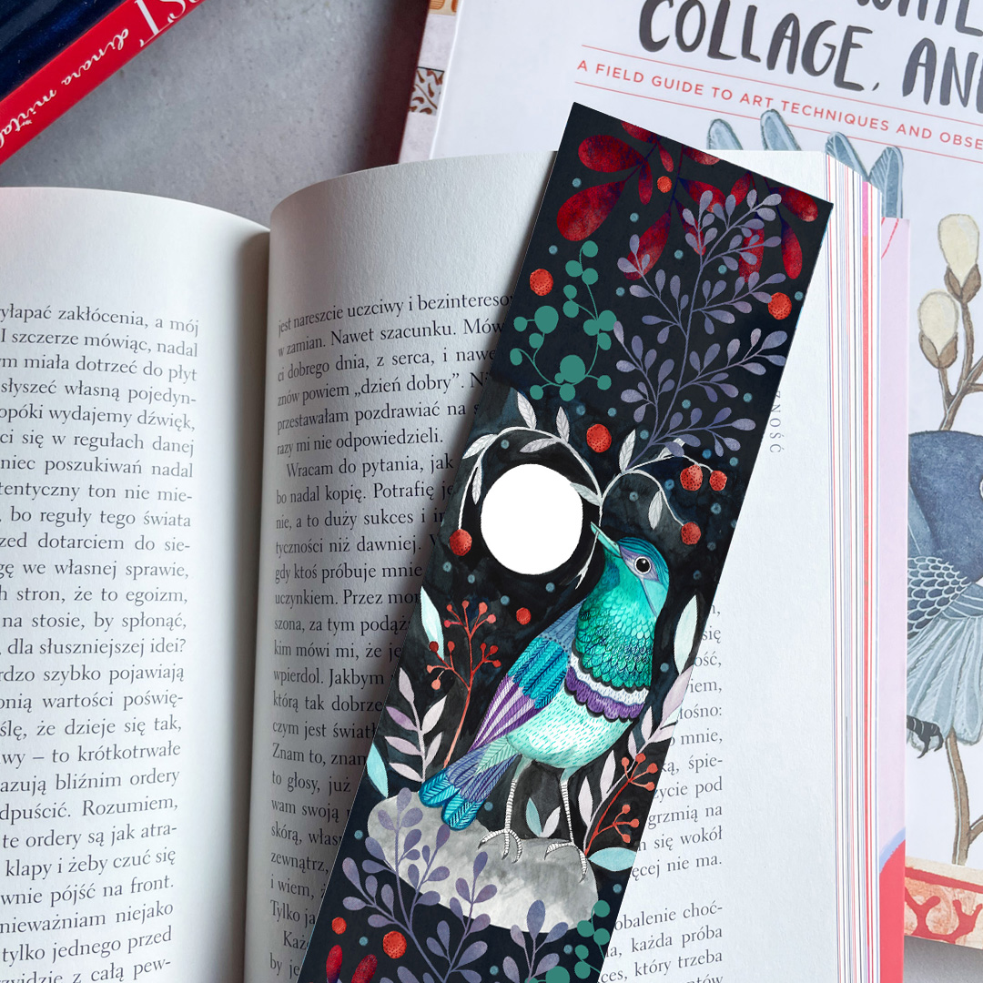 artystyczna zakładka do książki z księżycowym ptakiem
