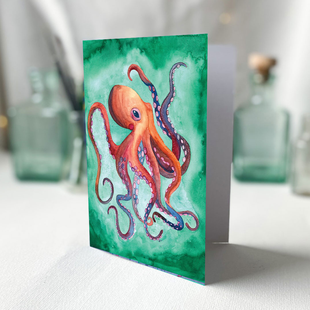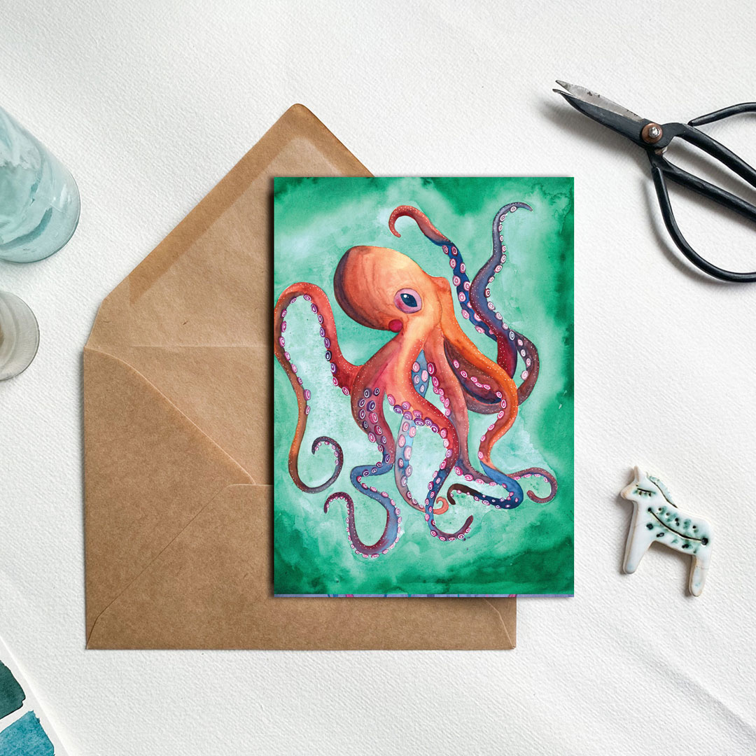 artystyczna kartka z kopertą i ośmiornicą