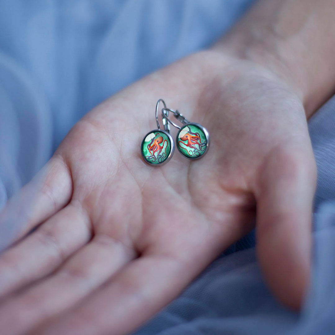 Kolczyki wiszące z kolorową, autorską ilustracją z serii Morski Świat