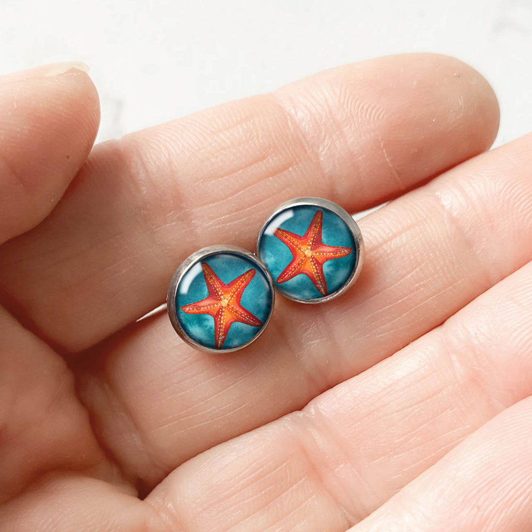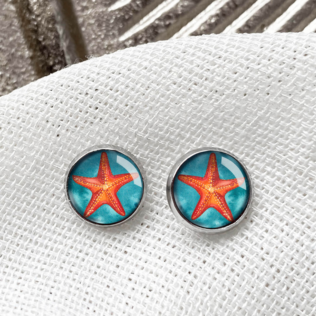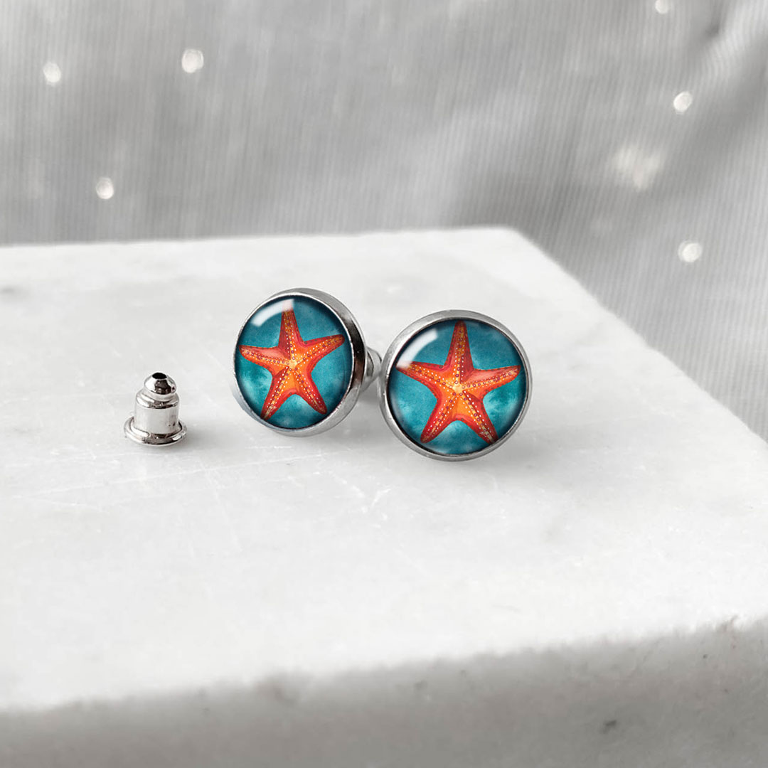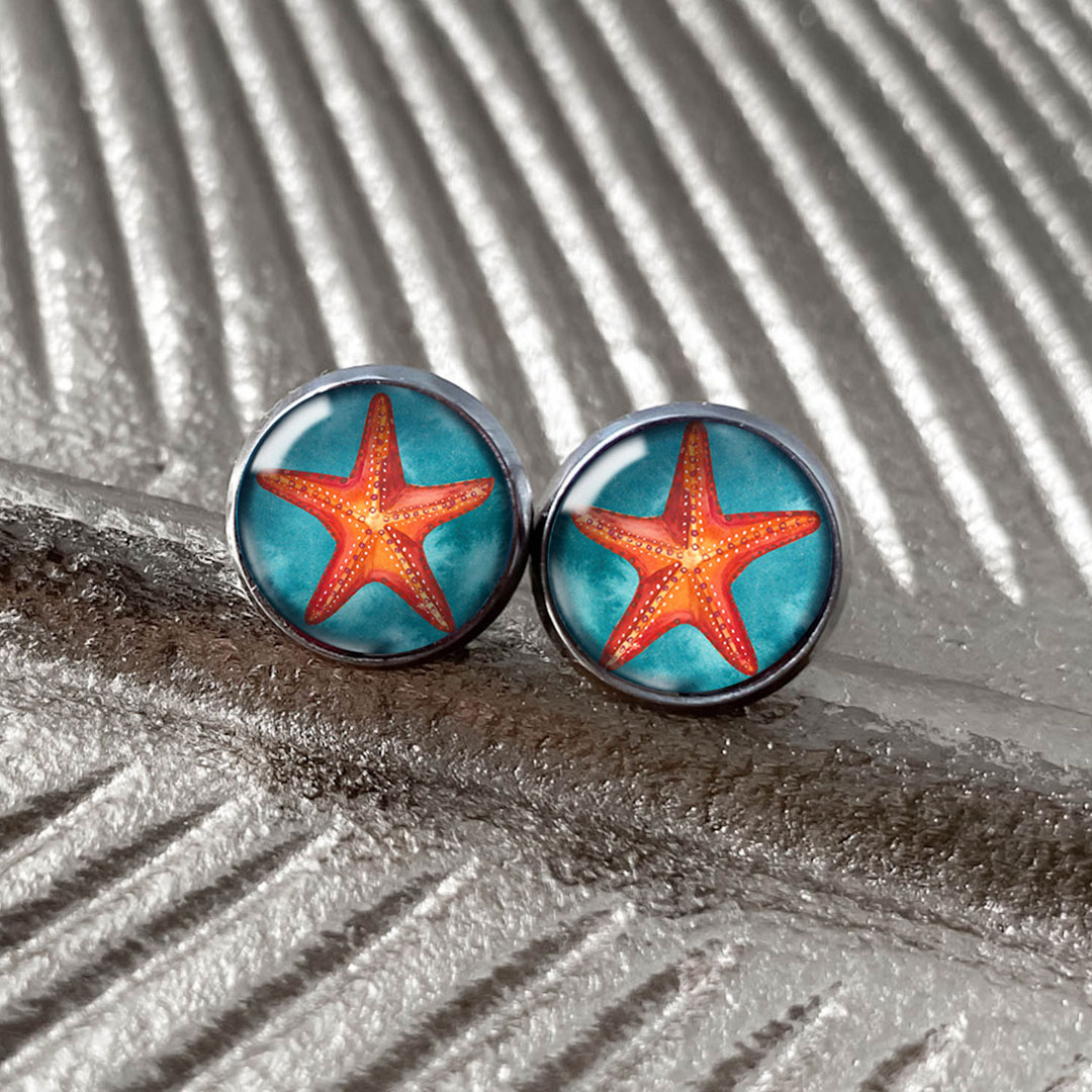 - Orange Sea Star kolczyki wkrętki