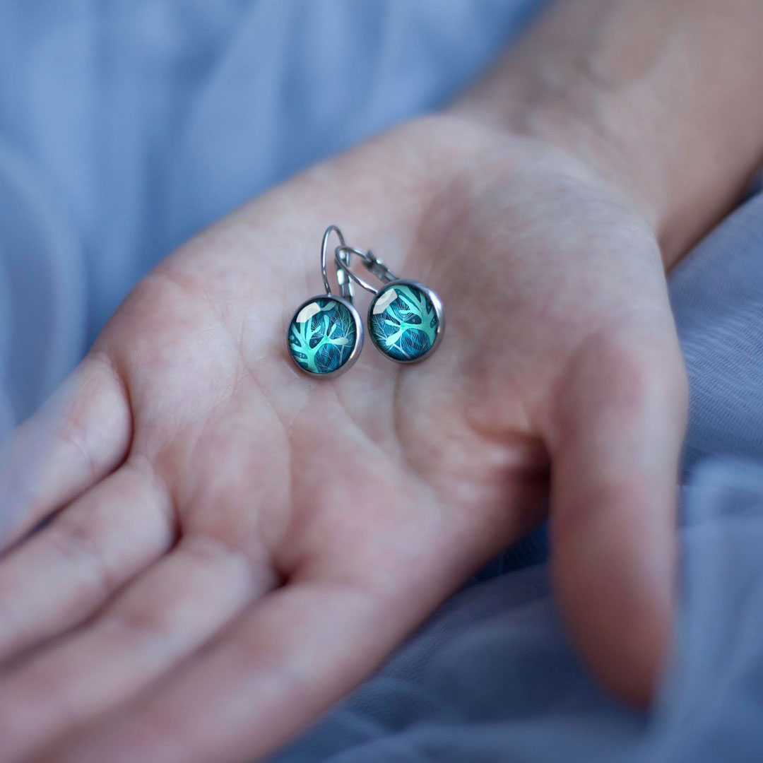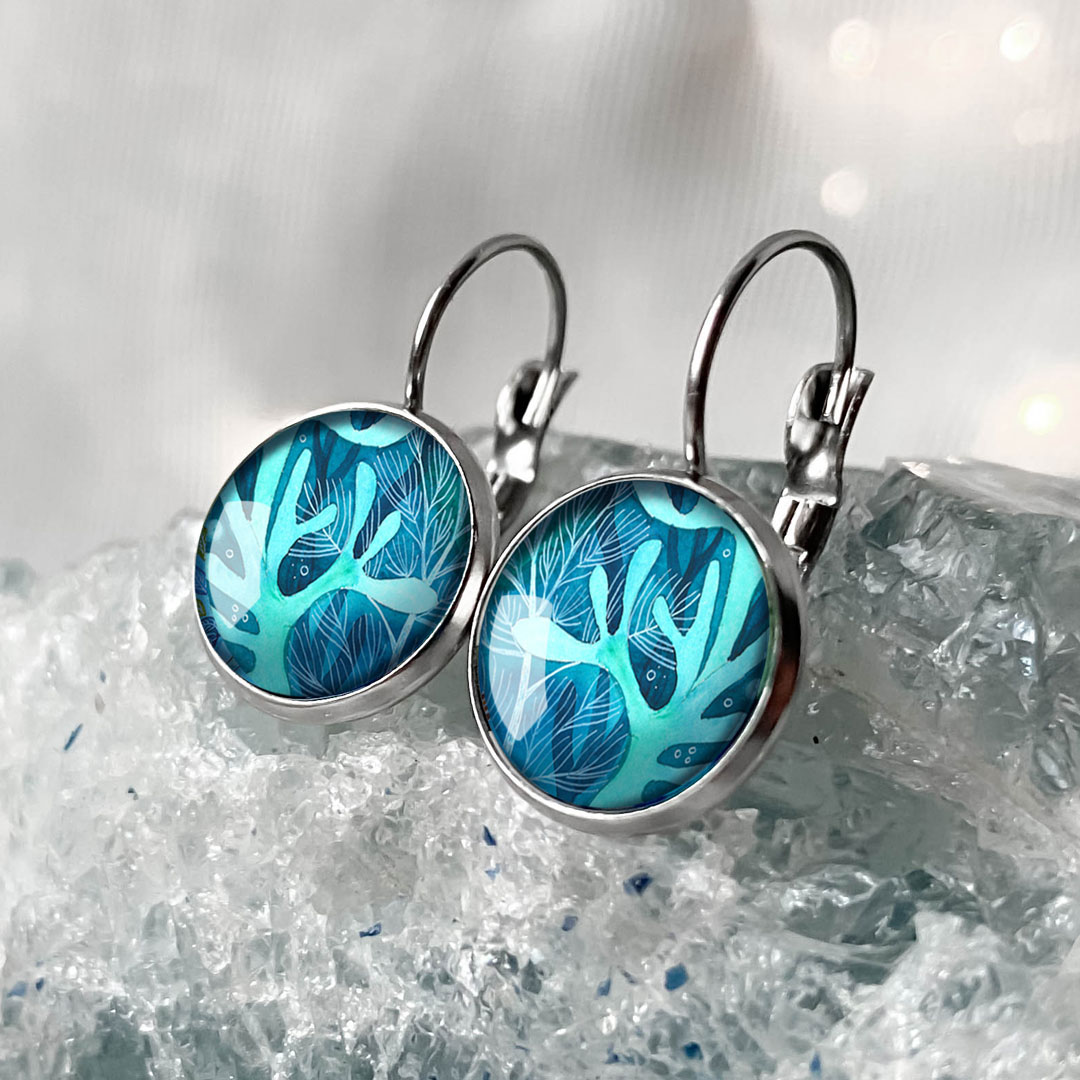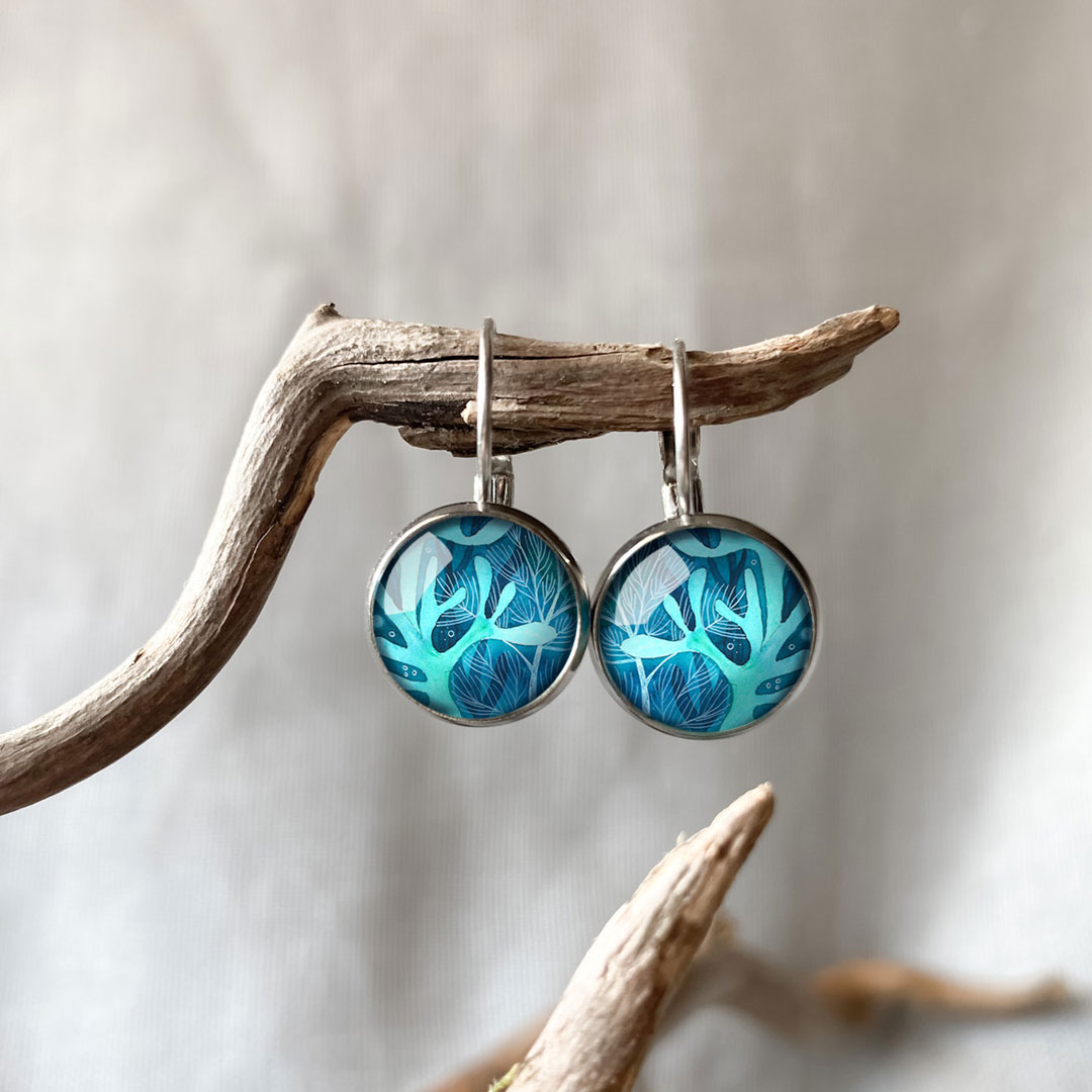 Kolczyki wiszące z kolorową, autorską ilustracją z serii Morski Świat