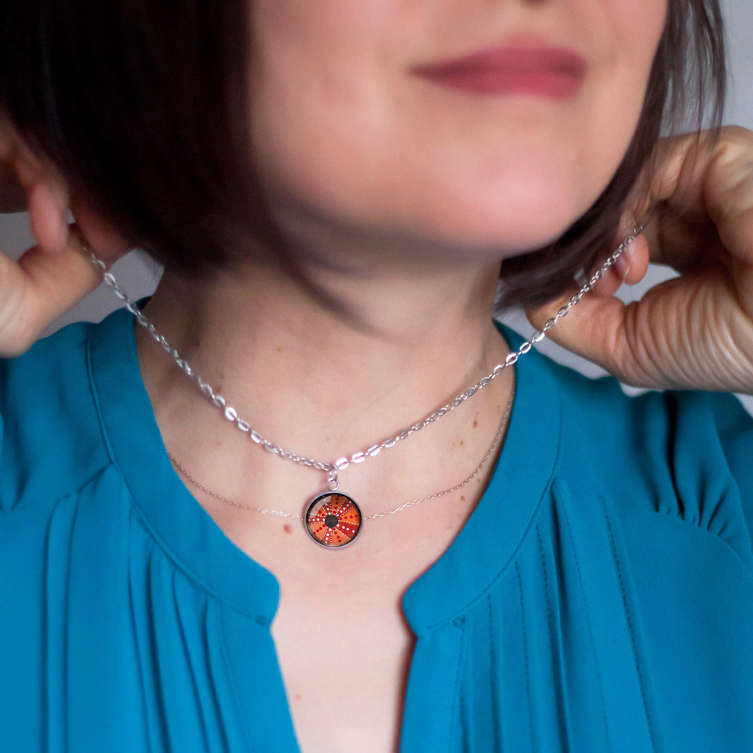 Każdy medalion jest ręcznie wykonany, co dodaje mu jeszcze większej wyjątkowości i kunsztu. Ten naszyjnik na łańcuszku jest nie tylko piękny, ale także bardzo wygodny w noszeniu. Piękne kolory i wyjątkowy motyw sprawiają, że medalion stanie się Twoim osobistym amuletem.