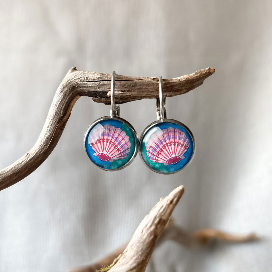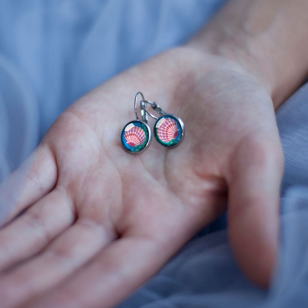 Kolczyki wiszące z kolorową, autorską ilustracją z serii Morski Świat