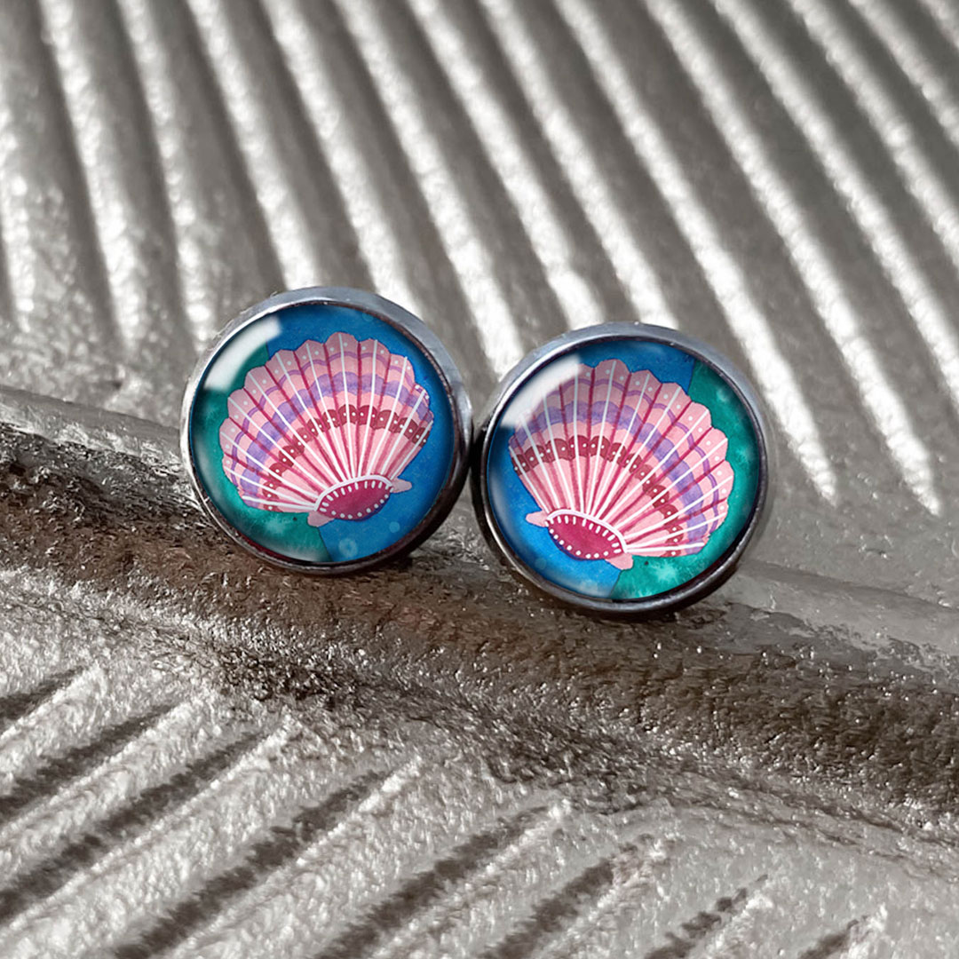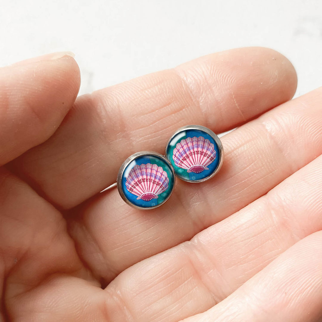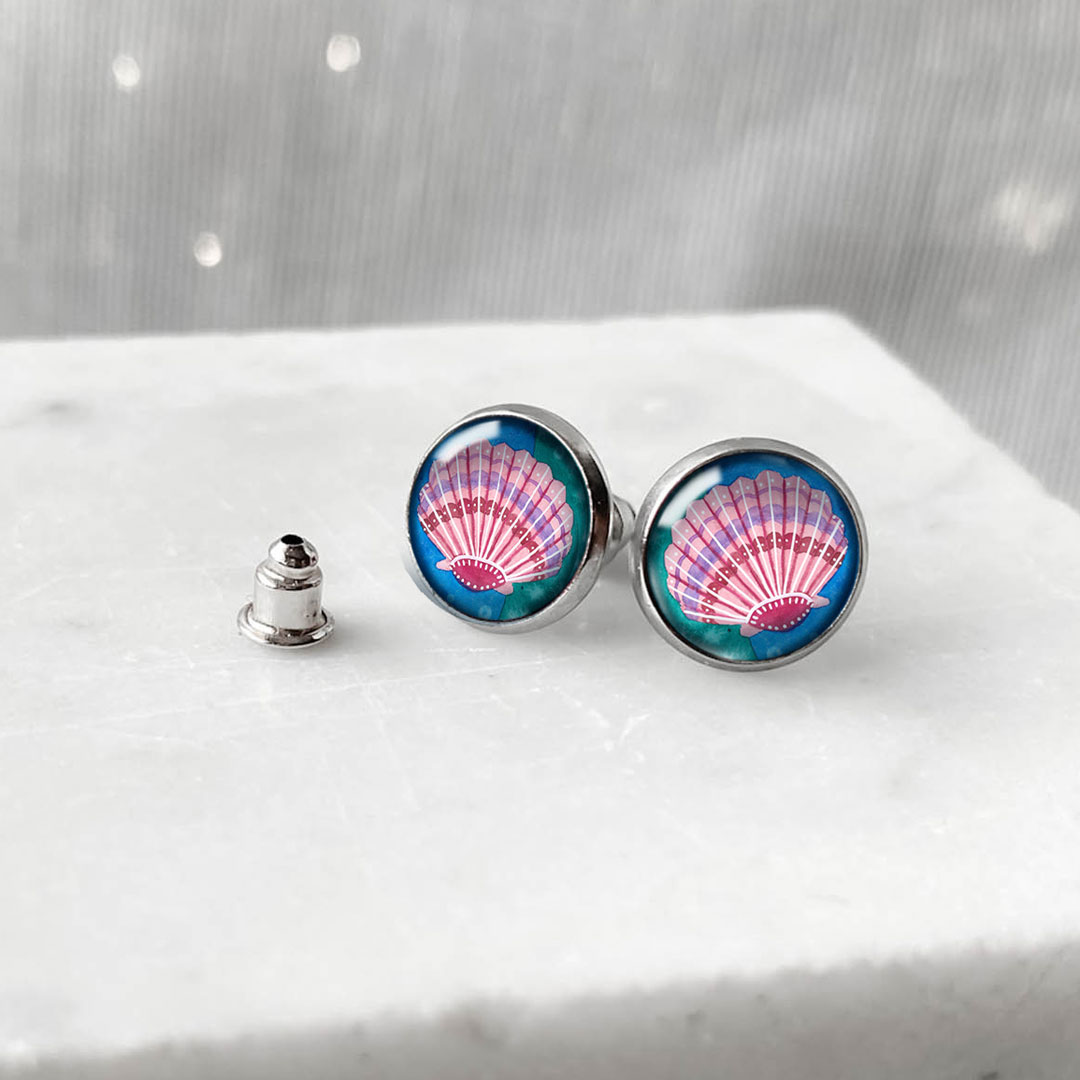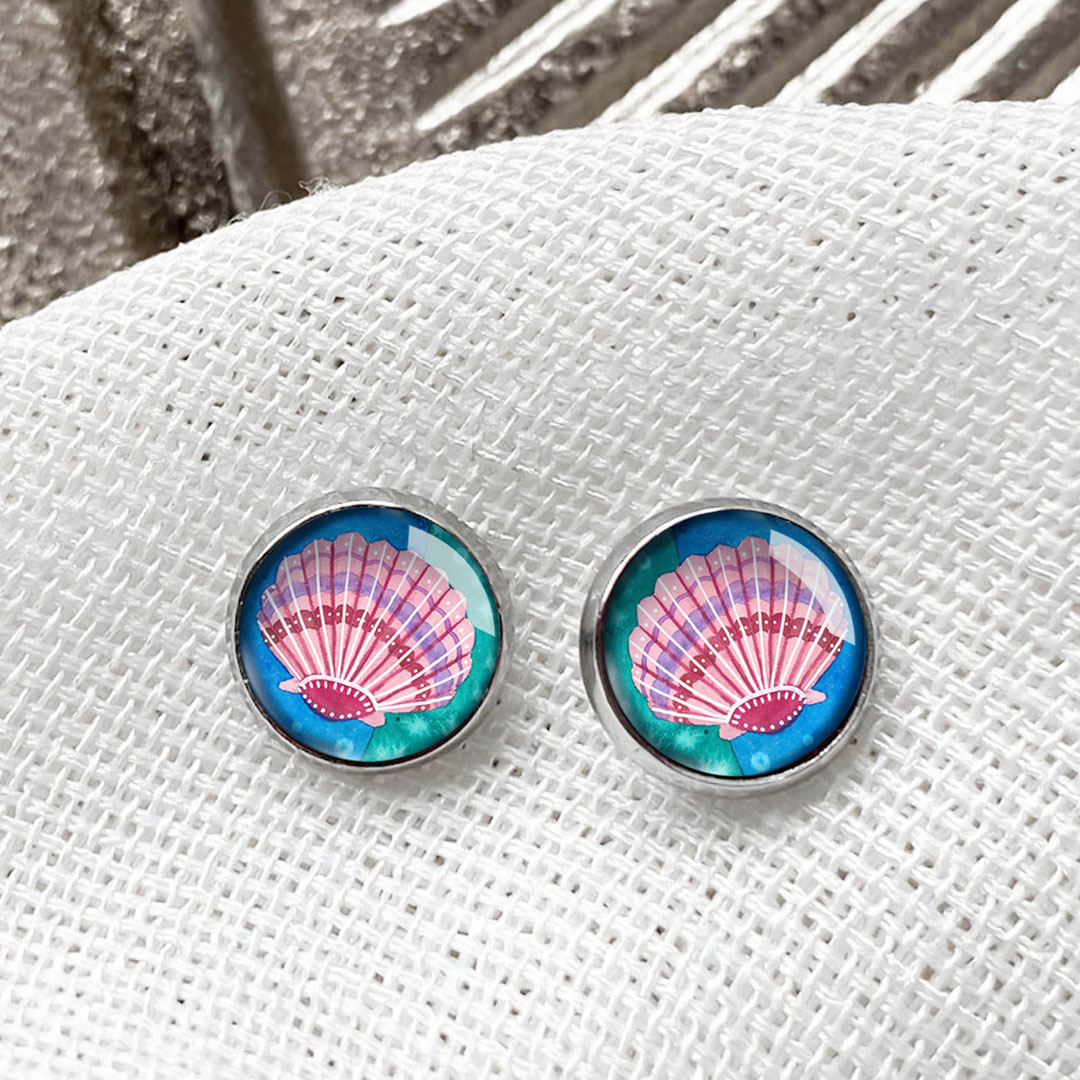 Kolczyki wkrętki z serii Morski Świat, z kolorową, autorską ilustracją to biżuteria, która łączy w sobie delikatną formę i wyrazisty wzór. Barwy obrazka są intensywne, dzięki czemu kolczyki przyciągają uwagę i dodają blasku do każdej stylizacji.
