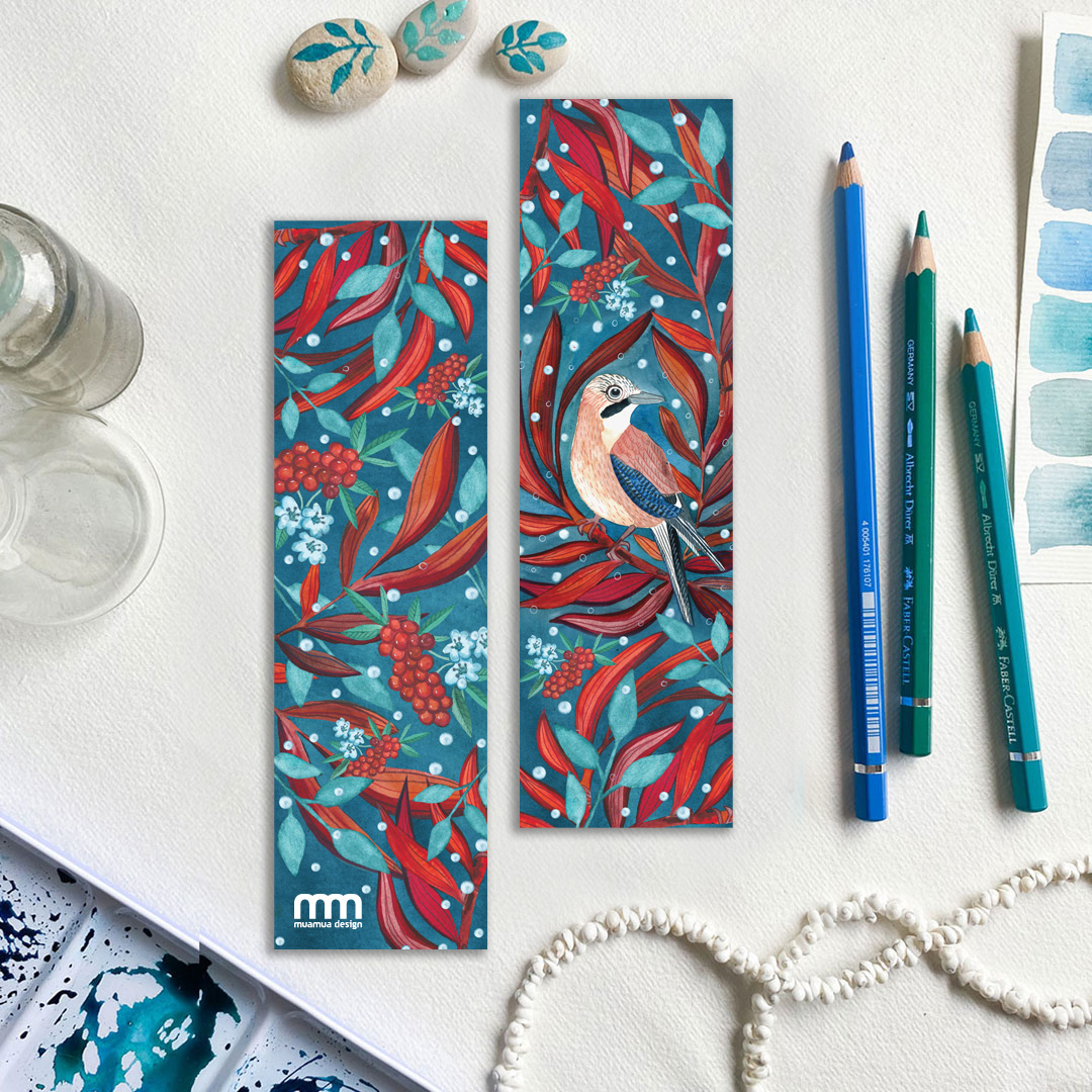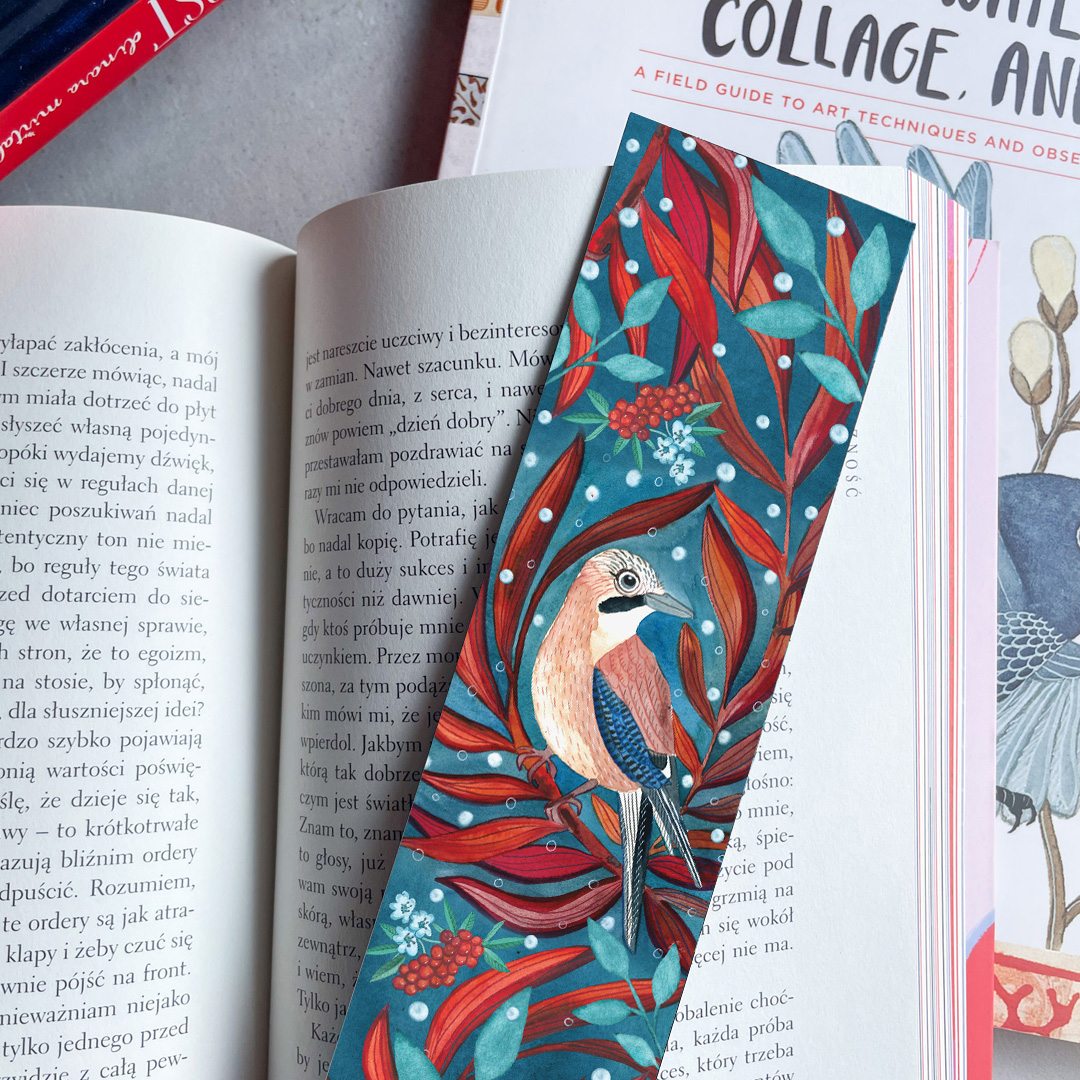 artystyczna zakładka do książki z sójką